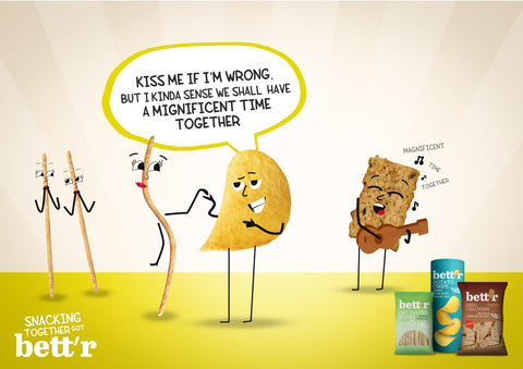Снаковете Bett’r са печени, а не пържени, приготвени от био съставки – без изкуствени добавки и без вредни мазнини. Те са хрупкава и вкусна алтернатива на традиционните снаксове.