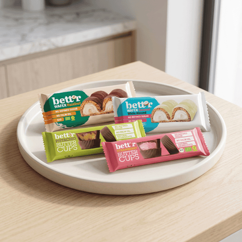 Satisfy your sweet cravings with the "Sweet Delights" bundle! This carefully curated selection features four premium, organic Bett'r treats: a tropical coconut & almond wafer, a classic hazelnut cream wafer, decadent pistachio pralines, and fruity strawberry pralines. Crafted with clean ingredients, this collection is the perfect guilt-free indulgence for any snack lover.