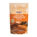 Dragon Superfoods Канела на прах е фино смляна вътрешна кора на вечнозеленото дърво Cinnamomum verum, известно още като "цейлонска канела". В сравнение с по-разпространената Канела Касия има по-светъл цвят, по-деликатен вкус и аромат и минимално количество на веществото кумарин (<0,004%), което би могло да бъде токсично във високи дози.