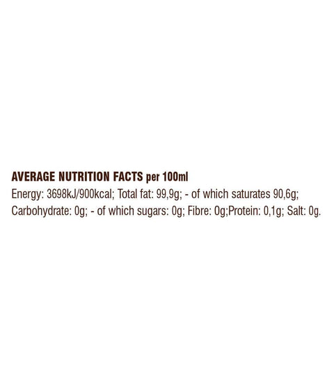 Препоръчителна употреба: Освен че придава екзотичен вкус на всяко ястие, за разлика от повечето растителни масла, кокосовото е и устойчиво на висока температура. Изключително ценно като козметичен продукт, нашето масло хидратира в дълбочина сухата кожа и коса, оставяйки ги подхранени, копринено меки и кадифено меки.