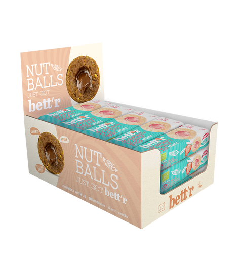 Био плодови топчета Bett'r с ягодов и кокосов пълнеж са веганско изкушение без глутен, което ще ви спечели с перфектния баланс на вкусове и неустоим пълнеж! Всяка хапка е наслада за сетивата, а най-хубавото е, че тези плодови топчета се предлагат в опаковка по три. Идеален за задоволяване на желанието ви за сладко или споделяне с любим човек! Готови ли сте да споделите добротата?